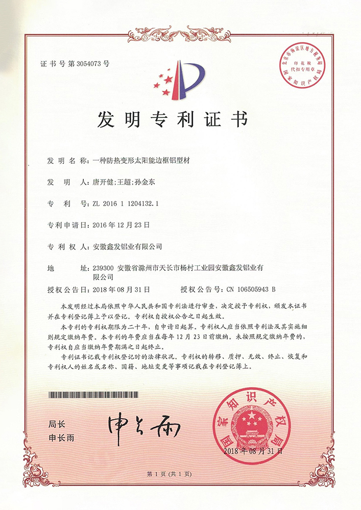 一种防热变形太阳能边框铝型材