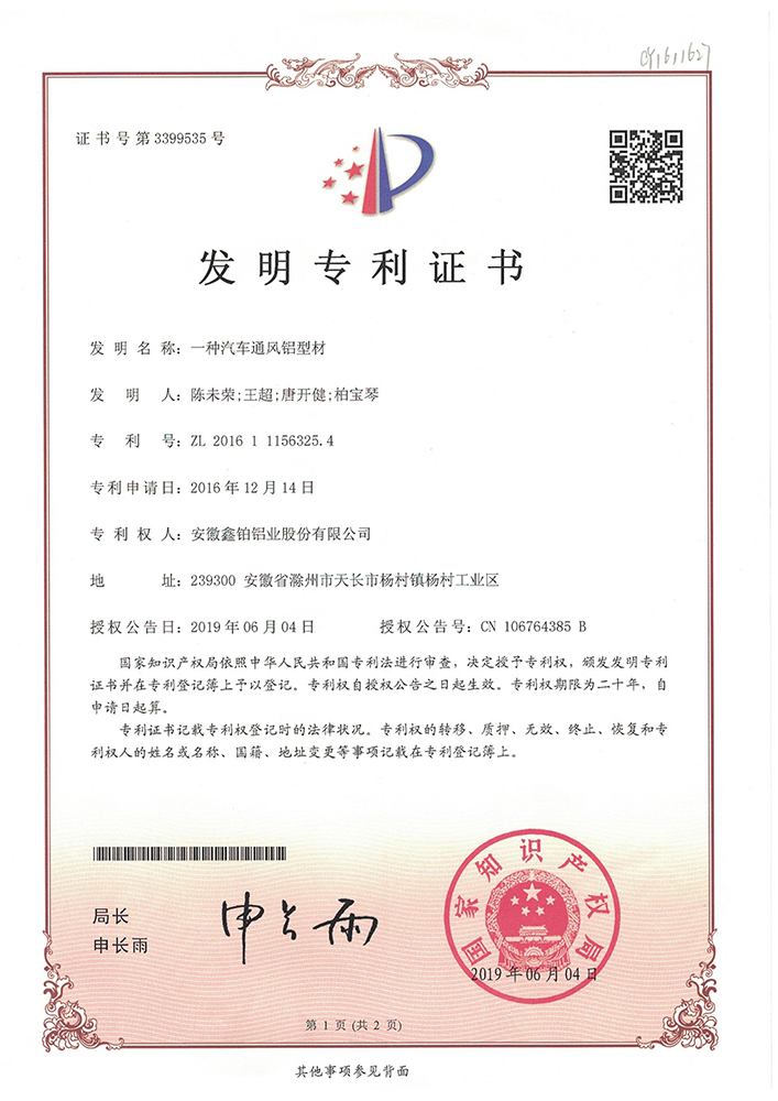 一种汽车透风铝型材