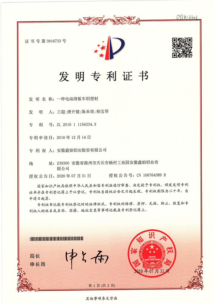 一种电动滑板车铝型材